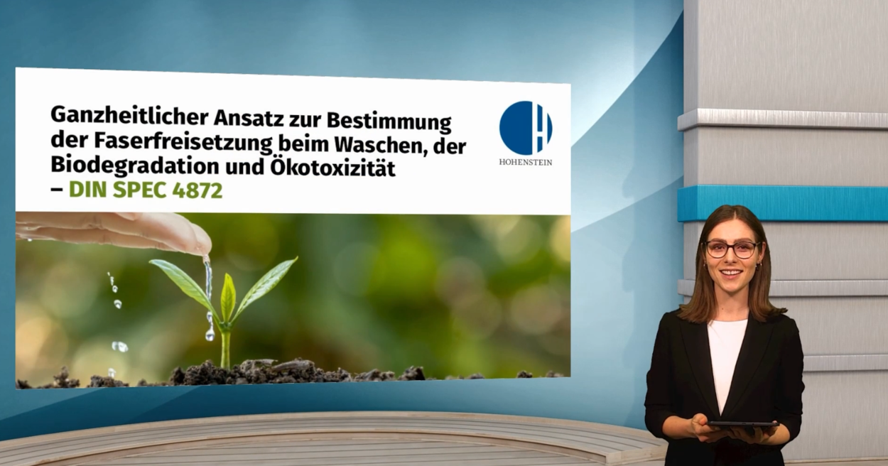 Die neue DIN SPEC 4872 ist ein standardisiertes Prüfverfahren zur Ermittlung und Klassifizierung der Umweltbelastung von Textilien beim Waschen. Mit der Prüfmethode wird untersucht, wie viele Fasern beim Waschen von Textilien ausgetragen werden, wie gut sich diese Fasern im Abwasser abbauen und wie schädlich die Faserrückstände für die Umwelt sind.