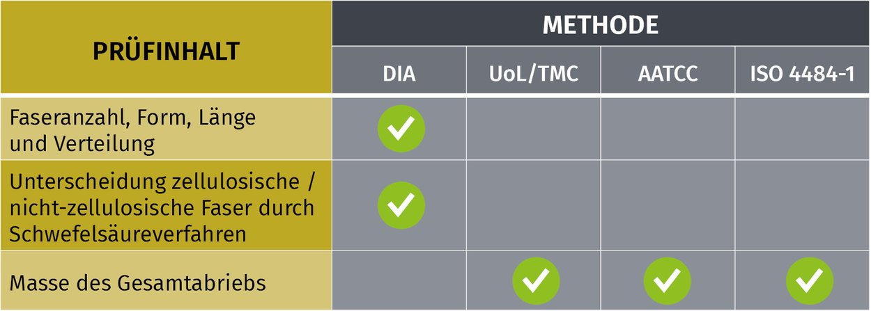 - Objektive Messung der Faserfreisetzung
