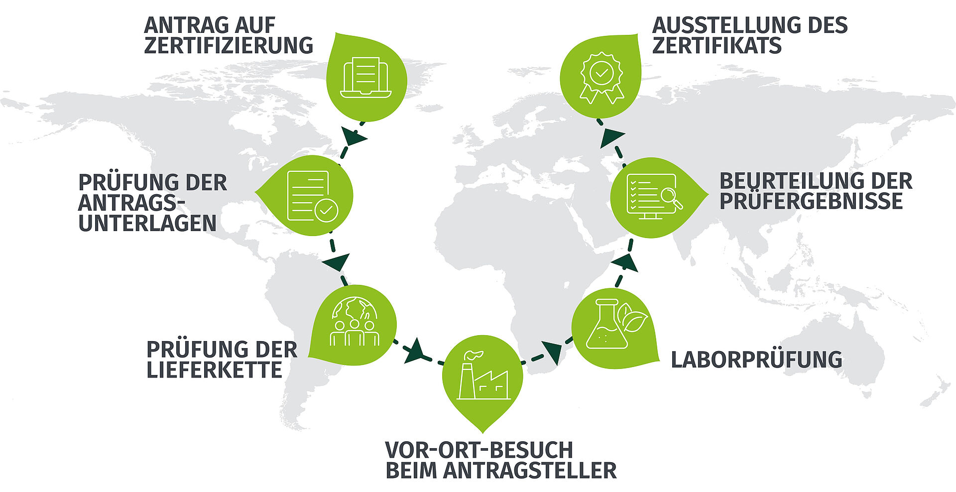 • Es gelten weltweit standardisierte Prüfkriterien für die Zertifizierung, die jedes Jahr überprüft und aktualisiert werden, um internationalen Anforderungen und Vorschriften zu entsprechen.